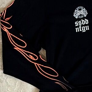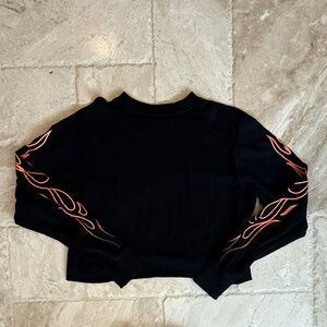 NWOT Darc Sport Cropped Black Gold's Gym Orange Flame Long-Sleeve Tee (Size M)