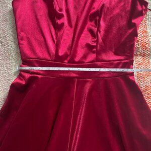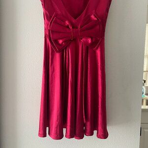 NWOT Dark Red Satin Christmas Mini Dress w Bow