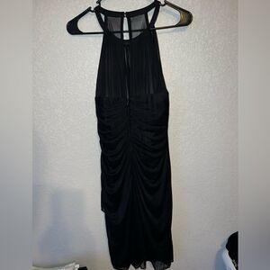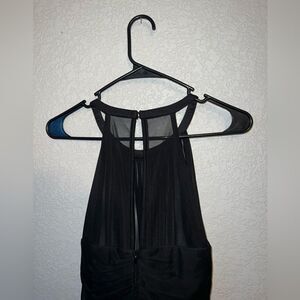 David's Bridal Black Sleeveless Long Mesh Dress with Illusion Neckline