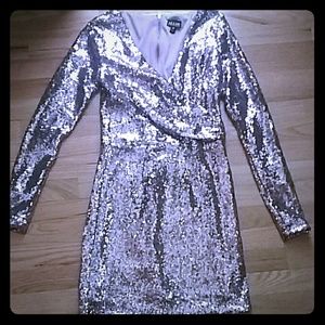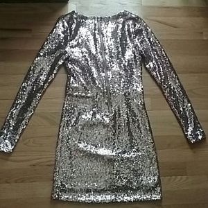 Absolutely sparkling rose gold sequined mini dress. Never worn, like new. Material has slight stretch. Fully lined top and slip for bottom, very comfortable. Zipper back. For that special event, be the most sparkling dazzling person there!