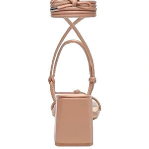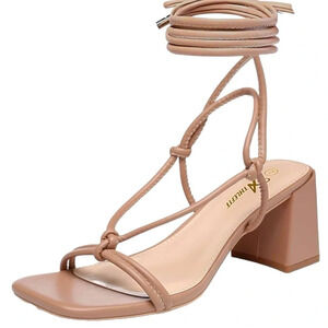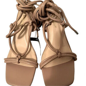 NWOT DearUser Women's Chunky Sandals Lace Up Square Open Toe Ankle Wrap Heels