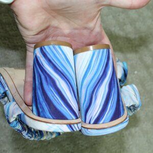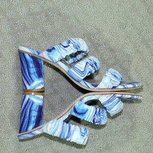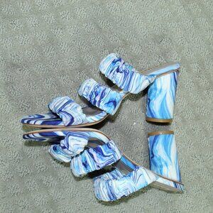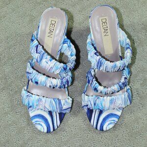 NWOT Deltan Cora Printed Size 7M Blue Heels Classy Scrunchy Chic Colorful