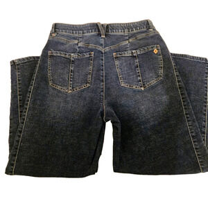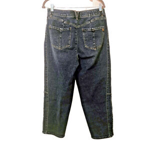 The NWOT Democracy Ab-solution Skyrise Relaxed Barrel Leg Stretch Jeans in size 10 are a stylish and versatile addition to any woman's wardrobe. Made from a blend of spandex and cotton, these jeans offer a relaxed fit for all-day comfort. The mid-rise waist and 5-pocket design add to both the style and functionality of these denim pants, making them perfect for any season. The dark wash and solid blue color give them a classic yet trendy look that can be easily paired with a variety of tops and shoes.