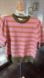 Elevate your wardrobe with this fun striped short sleeved sweater in pink and orange with olive accents. Perfect for adding a pop of color to your casual look. Never worn new condition.