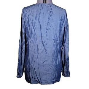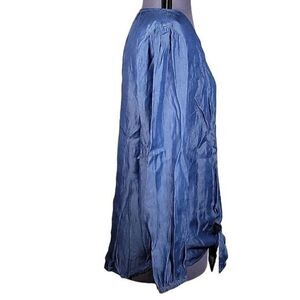 NWOT Denim & Co. Lightweight Denim Button-Front Tie Waist Top Sz M