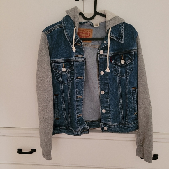 A little oversized, a lot of attitude. Designed with an extra-relaxed silhouette, the Levi’s® Ex-Boyfriend Trucker Jacket is an ideal outer layer whose slight drop shoulder creates a cool, borrowed-from-the-boys look. This unique hybrid model features comfy cloth sleeves and a hoodie.