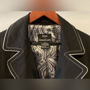 NWOT!!! Dennis Basso Black Trench Coat Jacket with White detail trim