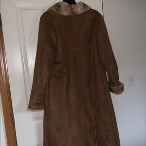 NWOT Dennis Basso car length button down shearling coat with fold down collar. Outer shell 100% polyester, inner shell face 100% acrylic, backing 100% polyester. Dry clean only.