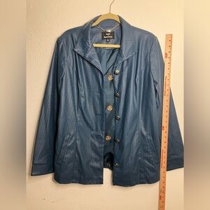 NWOT Dennis Basso Faux Leather Navy Blue Weave Texture Jacket Size M