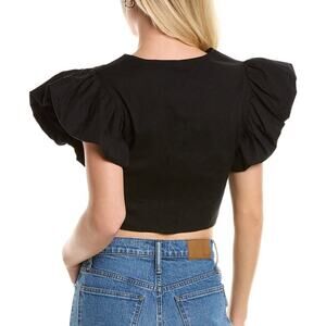 NWOT Derek Lam 10 Crosby Genna Puff Sleeve Front Zip Linen Blend Top Cropped