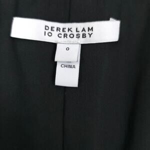Derek Lam 10 Crosby Genna Puff Sleeve Front Zip Linen Blend Crop Top in solid black and silver zipper.