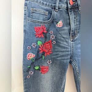 NWOT Desigual Blue Skinny Jeans with Floral Embroidery