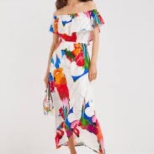 NWOT Desigual Pahoa Floral Maxi Off Shoulder Dress Size XS Beachy Resort