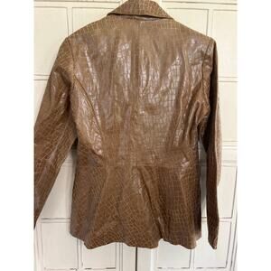 New without tags Dialogue size small brown embossed croc leather jacket. Measures 21” from armpit to armpit and 28” long.