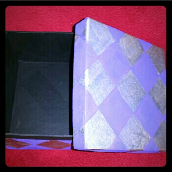 Elegant box with a purple and silver diamond design. Ideal for storage or decoration.