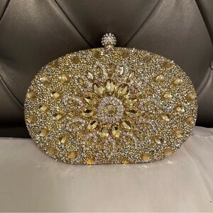 NWOT Diamond Women Clutch Evening Bags Bridal Crystal Flower.