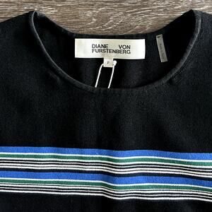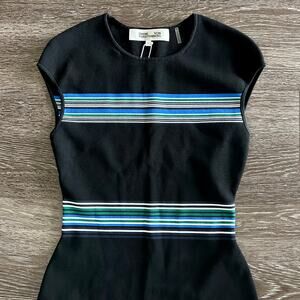 NWOT Diane Von Furstenberg Black Hadlie Stripe Sheath Knit Dress Size P | XS | S