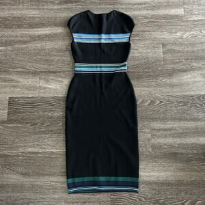 Diane Von Furstenberg Hadlie Striped Knit Sheath Dress Black Blue Green