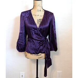 NWOT Diane von Furstenberg Torin Purple Silk Wrap Blouse Size 4