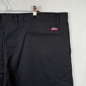 Dickies Casual Flat Front Core Work Pants Black Tool Pocket Straight Leg Size 42x32. No interior tags or size tags. NWOT , tool / screwdriver pocket on leg, front and back pockets, uniform pants. Excellent condition. See photos for details and unstretched measurements. Shop my closet and bundle multiple items for discounts and one shipping fee!