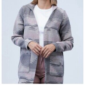 NWOT Dictionary Hooded Long Open Front Cardigan Gray And Pink Womens Size Medium