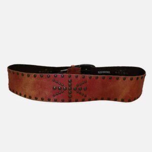 Diesel Red Leather Studded Belt Size 100 CM
