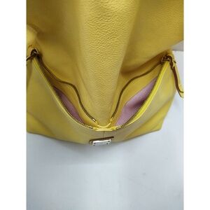 The Dillen hobo bag in large from Dooney & Bourke. Yellow leather. Two outside front zip pockets with braided leather pulls. New without packaging. (Scarf not included.)