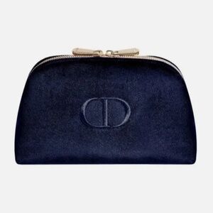 NWOT Dior Blue Velvet Cosmetic Bag with Beauty Items