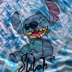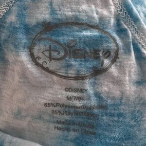 Stylish Disney top with a blue and gray tie-dye pattern. Features a comfortable fit.