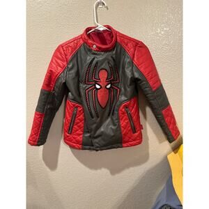 Product Details: The jacket is a faux leather motocross-style jacket, featuring a Spider-Man insignia, screen art, and quilted panels, designed for young fans of the Marvel superhero.