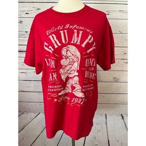 NWOT Disney Parks Mens Tee Shirt T-Shirt Grumpy size Medium . Red in color with spell out design having World's Infamous Grumpy One Bad Dude" printed throughout. Perfect gift for Dad / Father's day any day! Made in Honduras. 100% cotton. By Hanes. Pit to pit 20", back bottom of collar to bottom of shirt 28". Great new without tags condition makes a perfect gift for birthday, father's day, vacation disney beach any day grumpy dad!
