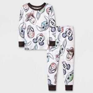 Tags removed but new. Very soft and cozy. Sold-out limited edition Disney100 pajamas. Featuring a character mashup of Stitch, Woody, Spider-Man, Baby Yoda (Grogu), and Mickey Mouse. Tagged as women's medium but sold as unisex set. Top and bottoms included.