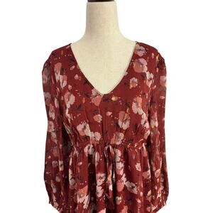 NWOT Dizzy Lizzy Long Sleeve Floral Print Ruffle hem Maxi