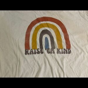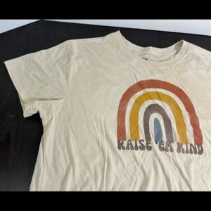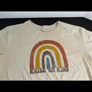 NWOT Doe T-Shirts “Raise ‘Em Kind” Rainbow Off White Tee Size XL