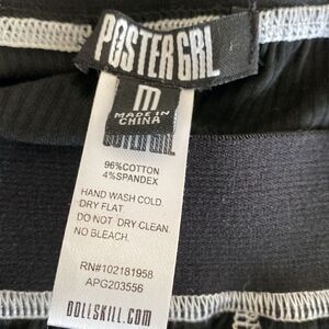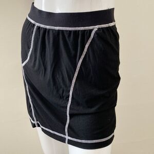 NWOT Dolls Kill Brand Poster Grl Black Ribbed Mini Skirt w Boxer Style Stitching