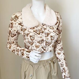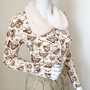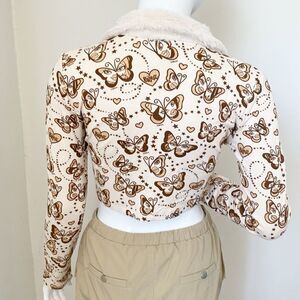 NWOT Dolls Kill x Bratz Rep the Realest Butterfly Print Cardigan Faux Fur Collar