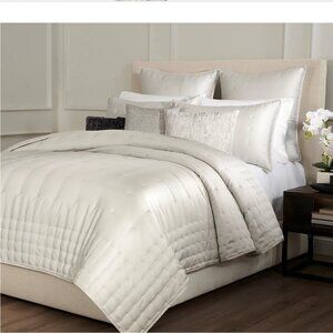 Donna Karan Hammered Silk and Cotton Full/Queen Quilt and 2 Standard Shams in Platinum