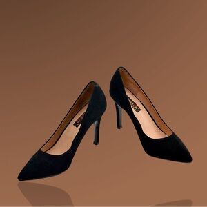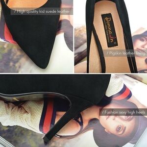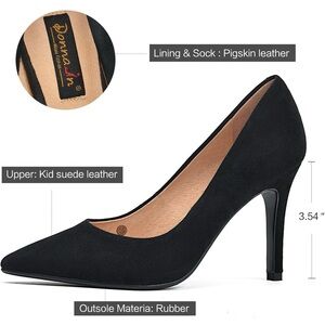 NWOT Donnain Black Suede High Heel Pointed Toe Pumps in Genuine Suede Size 10.5
