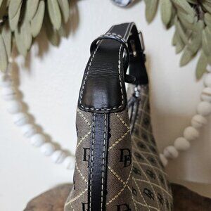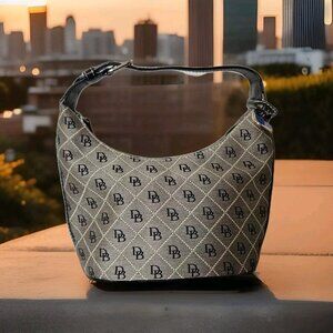 Classic meets glamour with this signature bag from Dooney & Bourke. This small bag is marvelous and made from their iconic canvas and leather that grows softer with age and is oh so fun to carry. Embellished with silver-tone hardware and accents, it offers a capable interior full of pockets to keep you organized. This bag is even more gorgeous in person. The subtle sheen adds the perfect amount of polish.