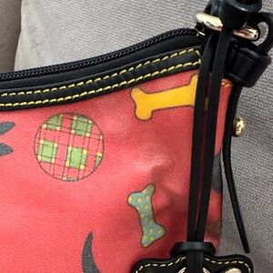 Vibrant red shoulder bag with playful Scottie dog pattern by Dooney & Bourke. Never used and in great condition but does appear to have some small marks on the back exterior as shown in photos. I’m not sure if they are part of the design or something that can be removed but I have not attempted to clean the bag. Interior is spotless in new condition with original paper packing.