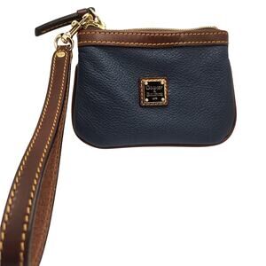 Navy blue and gold hardware wristlet. Comes with original paperwork for warranty, see images. Perfect condition. Wristlet strap is detachable. No interior pockets, but does have interior keyring.