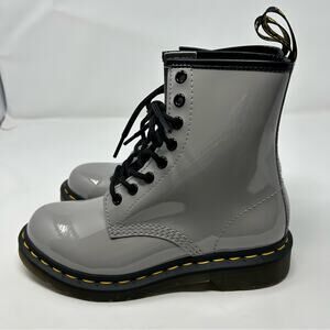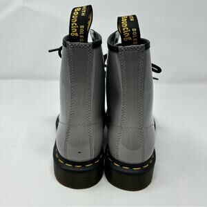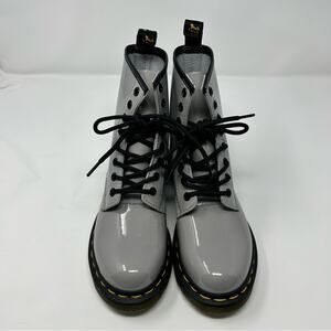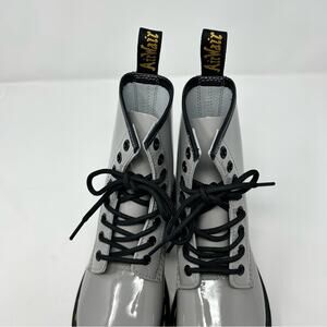 NWOT Dr. Doc Martens Smooth Patent Silver Leather 8 Eye Combat Boots 6 Women’s