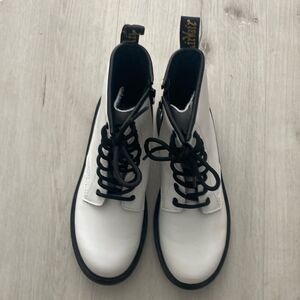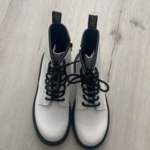 NWOT- Dr Martins- smooth white- black lace-up with side zipper- Women’s size 7