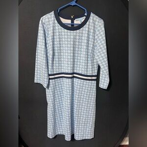 NWOT Draper James Blue/White Womens Dress 3/4 Length Sleeve Nylon Blend Sz LG