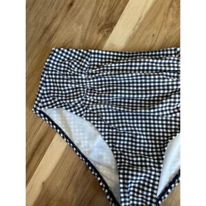 NWOT Draper James Navy Gingham Seersucker Side Shirred High Waist Bikini Bottom