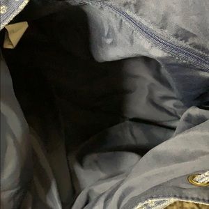 NWOT Drawstring Denim Backpack. No brand but made for Target. Never used. Measures: 15” H x 16” W x 6” D. Z