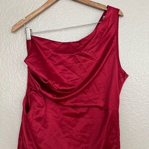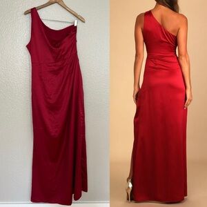 NWOT Dreaming of Elegance Wine Red Satin One-Shoulder Maxi Dress