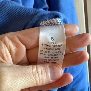Never worn- purchased online and it did not come with a tag. Vibrant blue sweatshirt with elegant graphic design. Ideal for a relaxed, stylish look. Sold out style!