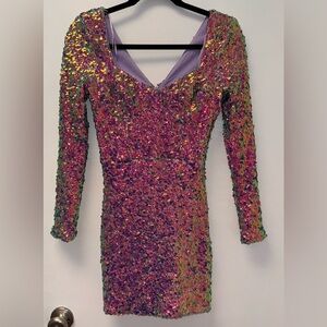 NWOT Dress The Population Danica Sequin Long Sleeve Body-Con Minidress Sz XS