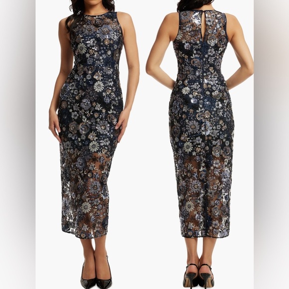 NWOT Dress The Population Helena Sequins Floral Mesh Sleeveless Dress sz S